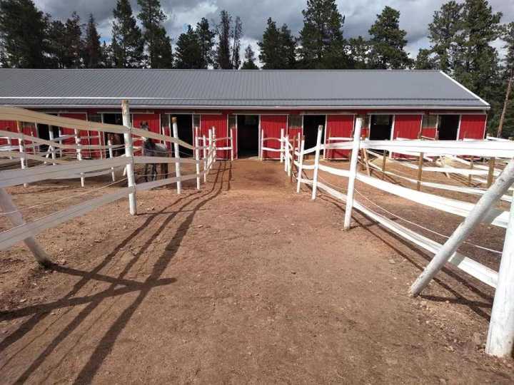 Horse Boarding in Conifer. Indoor, private stalls with 72' runs and turnout available for occupancy for either full-care or self-mucking services. Watering posts, daily turn out, outdoor arena, round pen, on site trail, and easy access to Flying J Open Space. We feed twice daily in hay nets according to needs of individual horse. Grain/supplements provided by owner, but given by staff at evening feeding. Contact us for more information and to set up a visit.